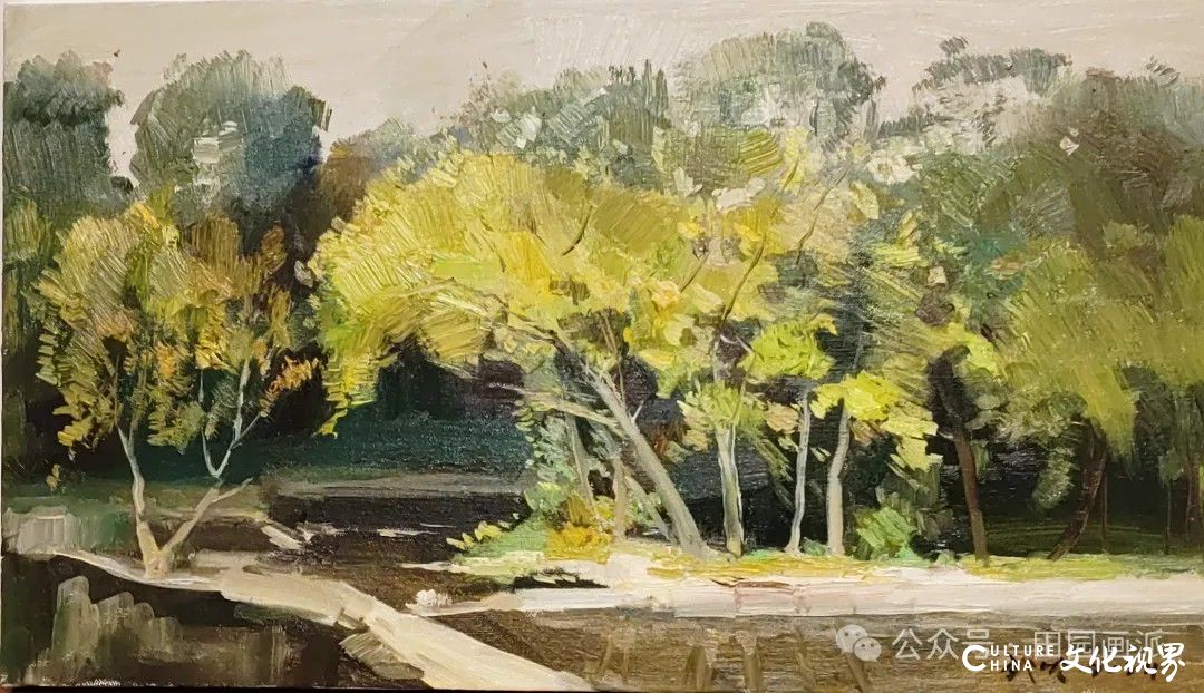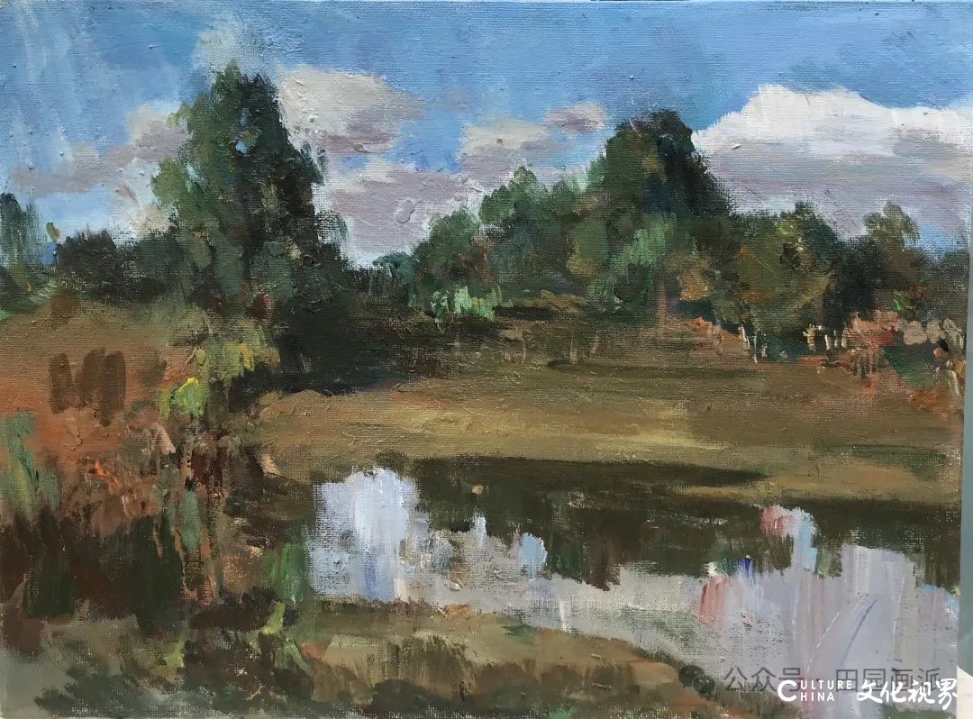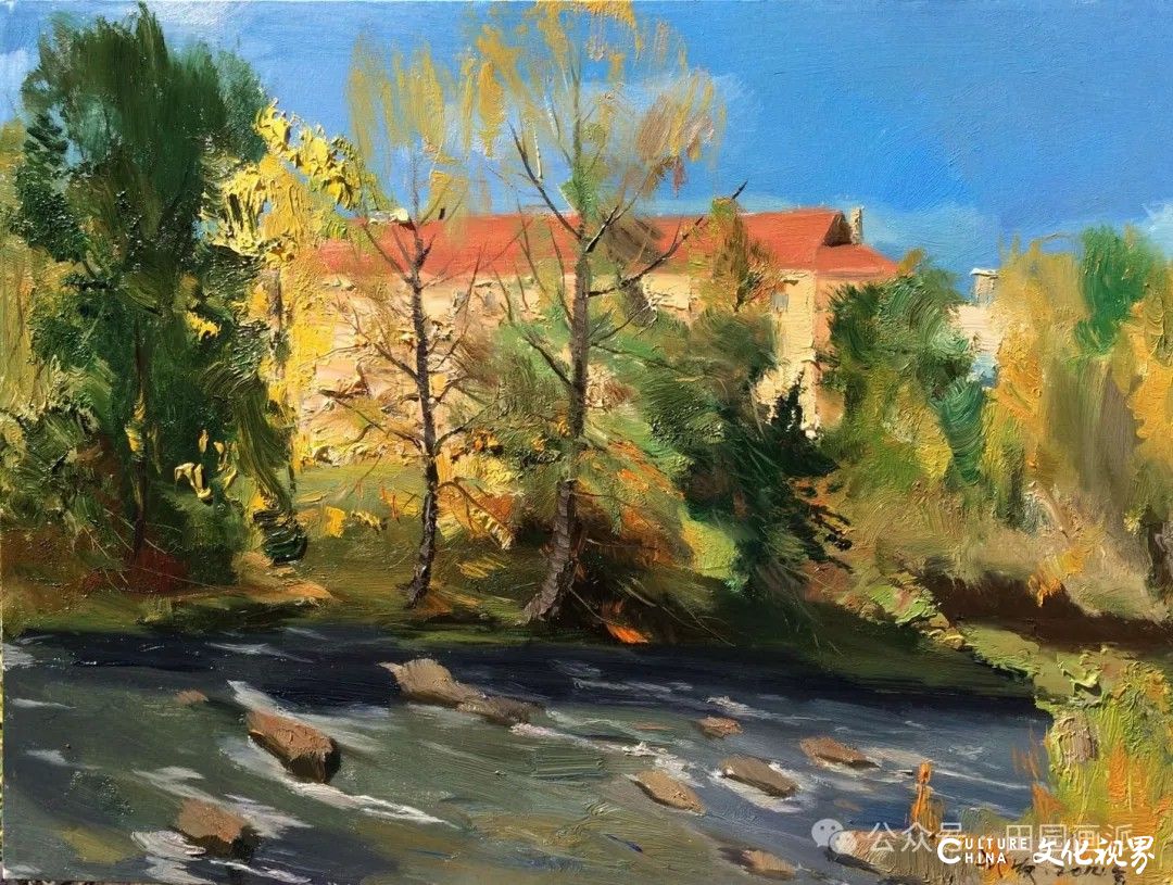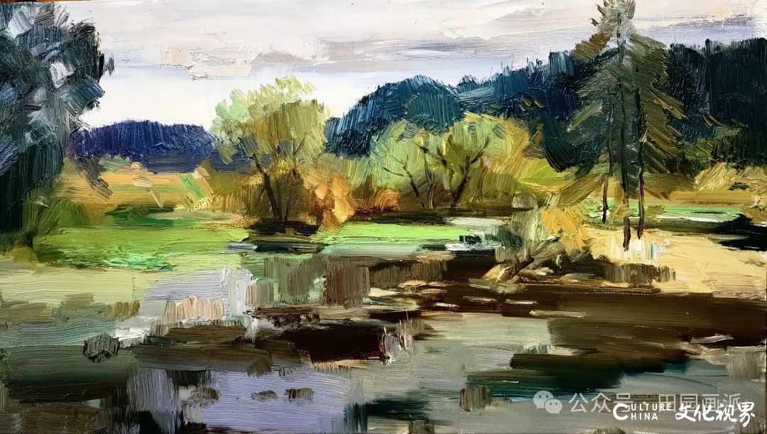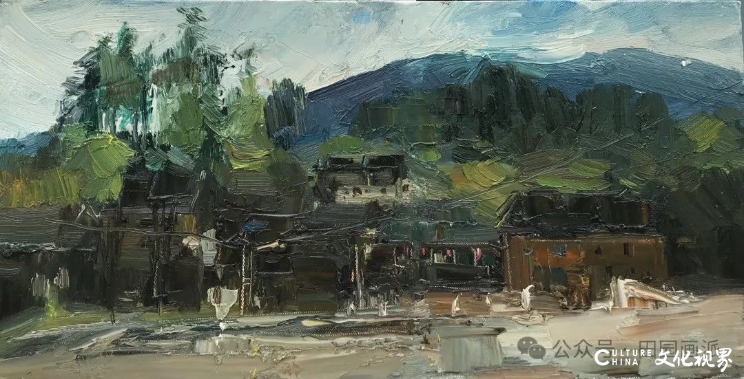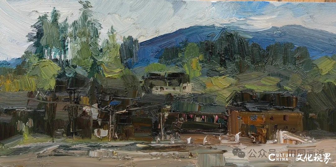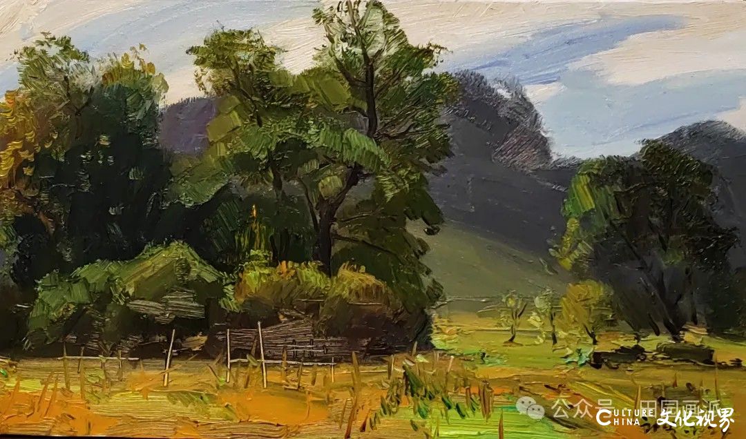 在当代油画的自然叙事谱系中,周武发的创作仿佛一部流动的生命年鉴。他以油彩为经纬,将田野的呼吸、草木的枯荣、农舍的烟火编织成视觉诗篇,既恪守写实主义的严谨法度,又融入表现主义的抒情张力,在笔触的游走与色彩的碰撞中,编织出自然与精神共振的纹理。